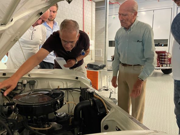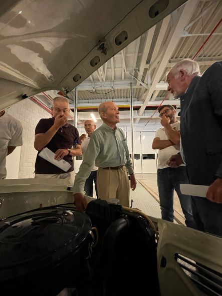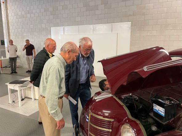 Correspondendo ao amável convite feito ao nosso Clube, uma dúzia de entusiastas da Marca estacionaram as suas viaturas clássicas junto à oficina de restauro do museu.