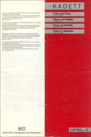 Brochura cores e trims Opel Kadett E